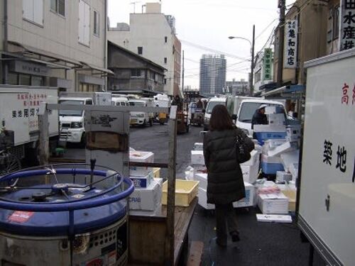 Fukunosukeです。 hiyokoが、「築地で朝ごはん食べて何か買う!」ときかないので、早起き して築地に行ってみた。 朝8時。 お腹が空くと機嫌悪くなるから、先に朝ごはん。築地というと“寿司屋”と いきたいところですが、ちょっとヒネリを効かせて、フライ物…