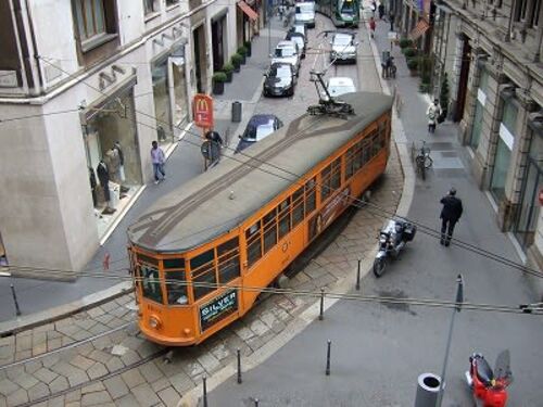 Fukunosukeです。 ミラノ散策続きます。今回は小ネタ編。 ミラノのトラムと言えばオレンジ色と相場が決まっている。 (という事は日本に帰ってから知った) と思いきや、こんな色の新型車両もあった。 アルファロメオのパトカー! 乗ってみたい! 万引きでも…