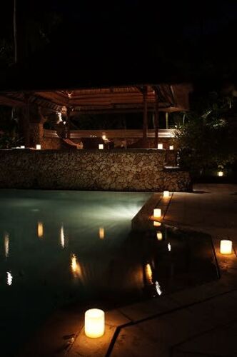 Fukunosukeです。 ヴィラに戻ると、すっかり準備は整っているようです。 あちこちにキャンドルが灯されてきれい。 去年のアマンダリは、お客さんをよんだので盛大にやりましたが、今年は二人だけ。 おう。おめでとー。 hiyokoはフレンチのコース、僕はインド…