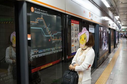 Fukunosukeです。 食べる事だけが今回の目的、、、到着の翌朝目指したのは、、、、 多分、地下鉄の路線図を見てもわからないhiyokoが、ボーっとしながら眺める路線図。 ほらー、眠くなるよー。hiyokoより: そんなことない!もう半分位ソウル地下鉄の路線図…