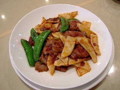 牛の味がいい。レバーのような、鹿肉のような味。筍もシャリシャリです。