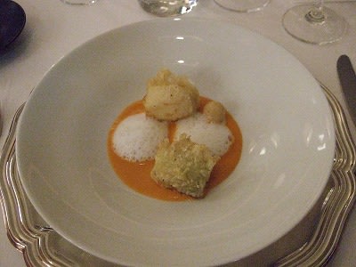 <地獲れほうぼうと帆立のソテー エシャロットとシャルドネ・ビネガーのソース>