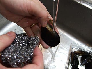 ムール貝は、金たわしできれいに掃除する(Fukunosukeの係)。