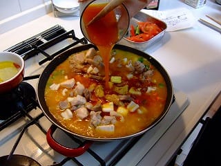 スープの素、トマトソース、サフランを少し足して水で溶きます。