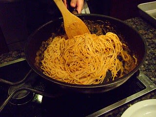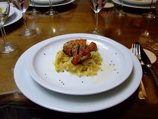 この日のパスタは乾燥のフェデリーニでした。かなりソースを吸う