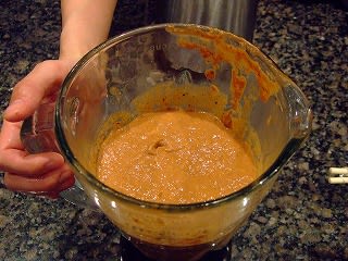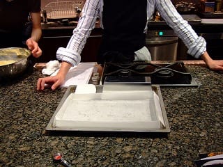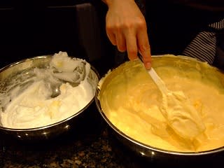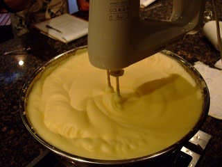 湯煎にかけながら普通のスポンジ生地を作り、型に流します。