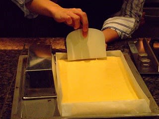 ロールケーキの生地より少し厚めにするため、こんな紙を使って