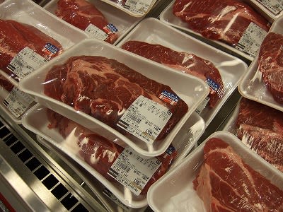 なんと100g/98円の牛肉。試食は悪くない味でした。BBQなら十分でしょう。