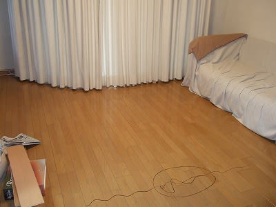 注意してー。」床にマジックでマークしてしまいました。あつかましい。