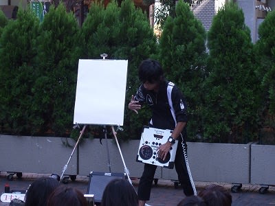 DJしつつ激しく踊りながら、絵を描いています。