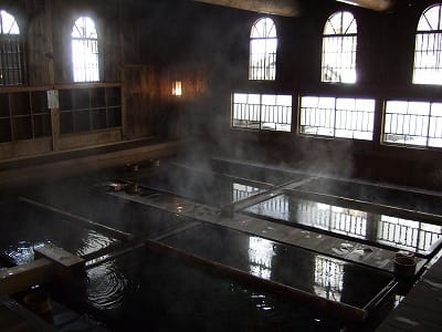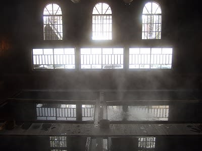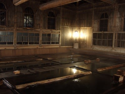 おー、いかにも湯治場って感じ。だけど窓枠の意匠が、那須の「鹿の湯」