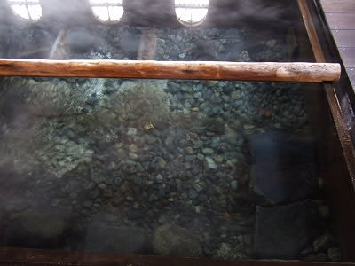 湯ぶねの底は、何と石ころがゴロゴロ。どうやら、その下から直接温泉が