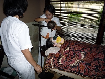 額にあるチャクラにオイルをたらし、何とかかんとか、、、。