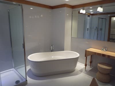 シンプルなバスルーム。あ、シャワーだけでなく、バスタブもついてます。