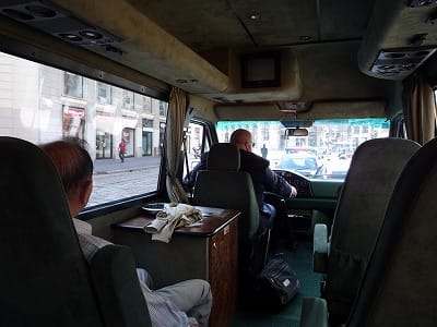 パパ友ガイドさんが車を手配してくれたのですが、なんとベンツのミニバス