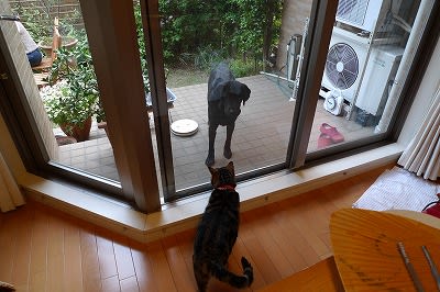 ViViちゃんはお隣の黒ラブ。今日は垣根を越えて