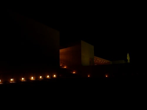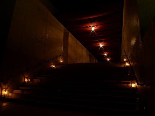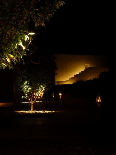 夕暮れになると、特大のキャンドルホルダーが点々と準備されます。