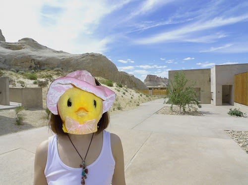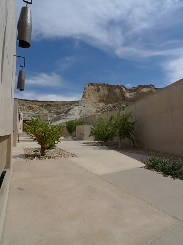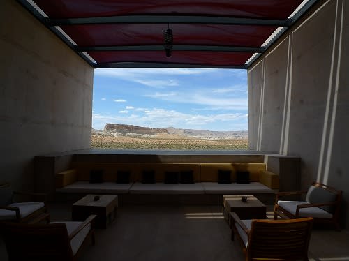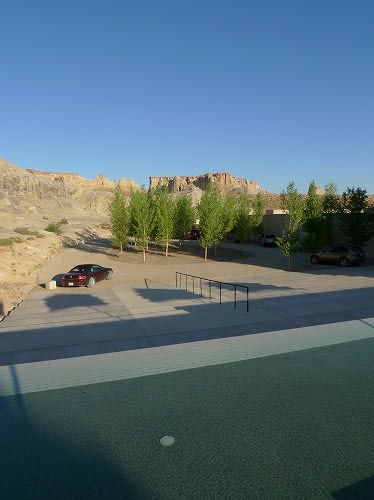 奥には、額縁で切りとったメサ(台地)の風景が。銭湯じゃないんだよ。