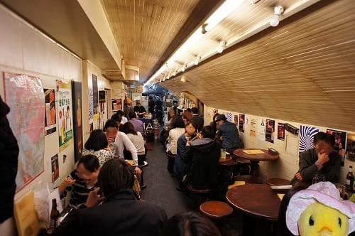 有楽町ガード下のこの店、かなり強烈。天井が丸いです。店というより通路です。