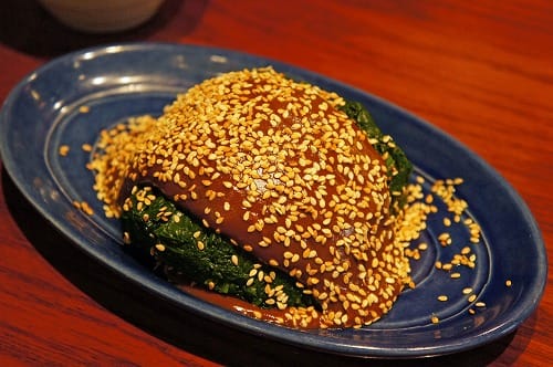 北京の名物だという、茹でたほうれん草に何か味噌がのったもの。うーん。こりゃ何でもないな。